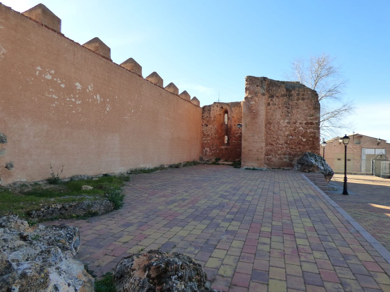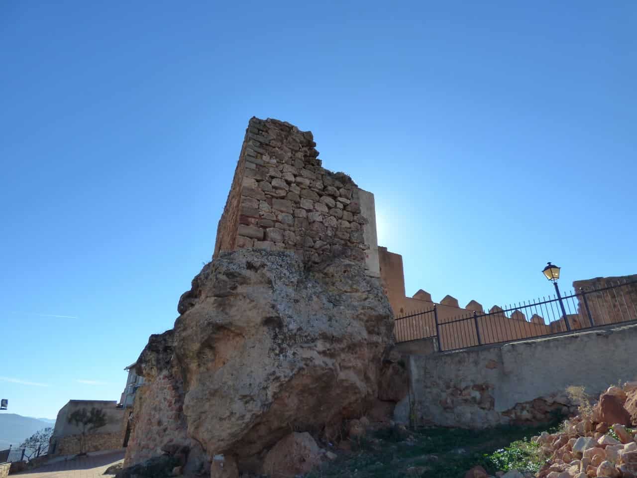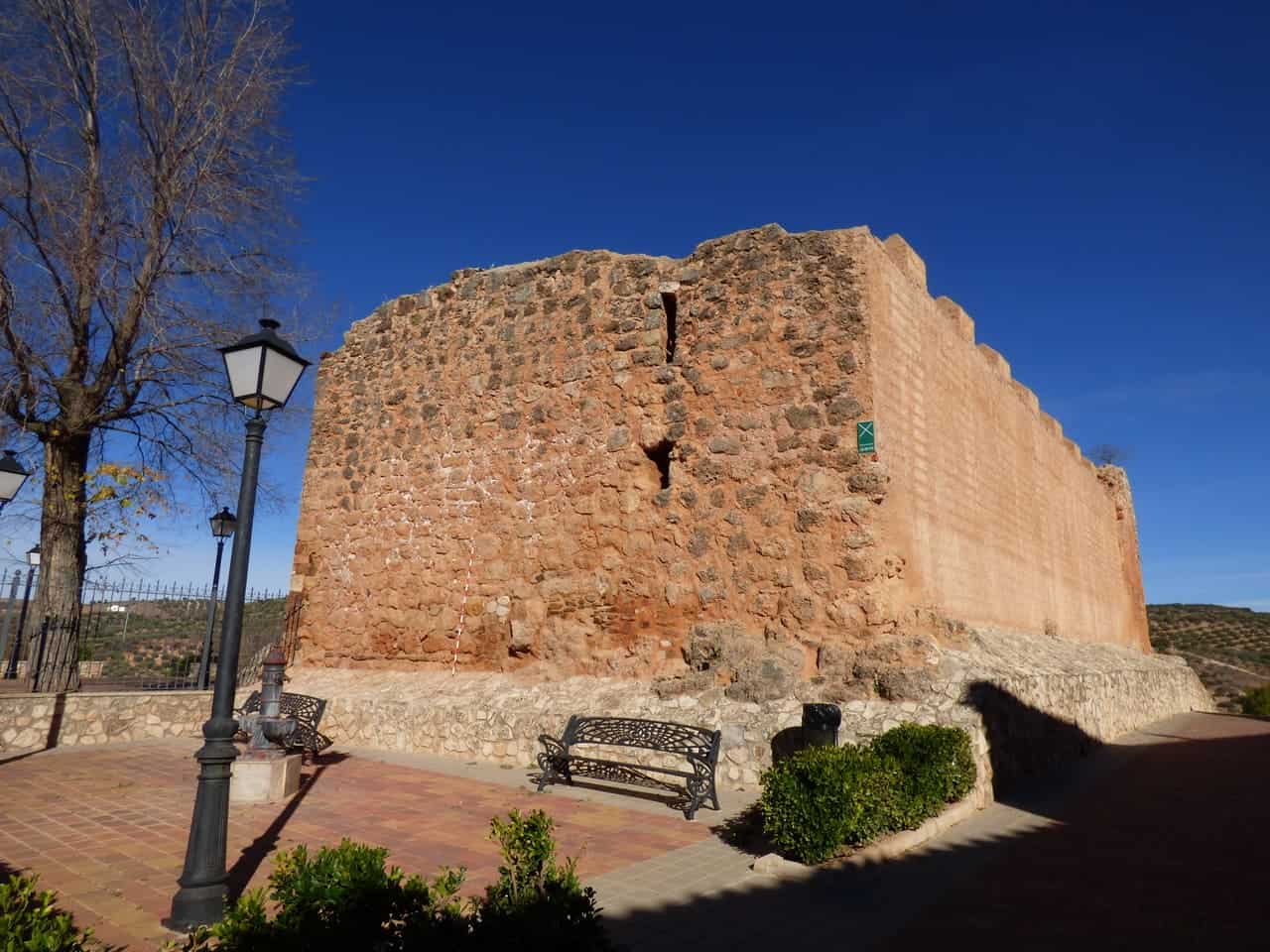 El castillo de Albaladejo se encuentra dentro del propio casco urbano, en el extremo occidental, ocupando el punto más alto y escarpado del cerro sobre el que creció la población. No es un castillo aislado en el campo, sino una pieza ligada al pueblo y a su entorno inmediato, especialmente a la parroquia, con la que forma un conjunto. Su situación ayuda a entender su función histórica: vigilar el valle y los pasos hacia Andalucía.